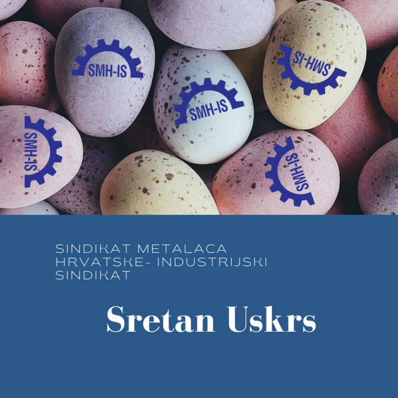 Sretan i blagoslovljen Uskrs svim radnicama i radnicima, a posebno članovima SMH-IS i njihovim obiteljima želi predsjednik Siniša Kosić sa suradnicima.